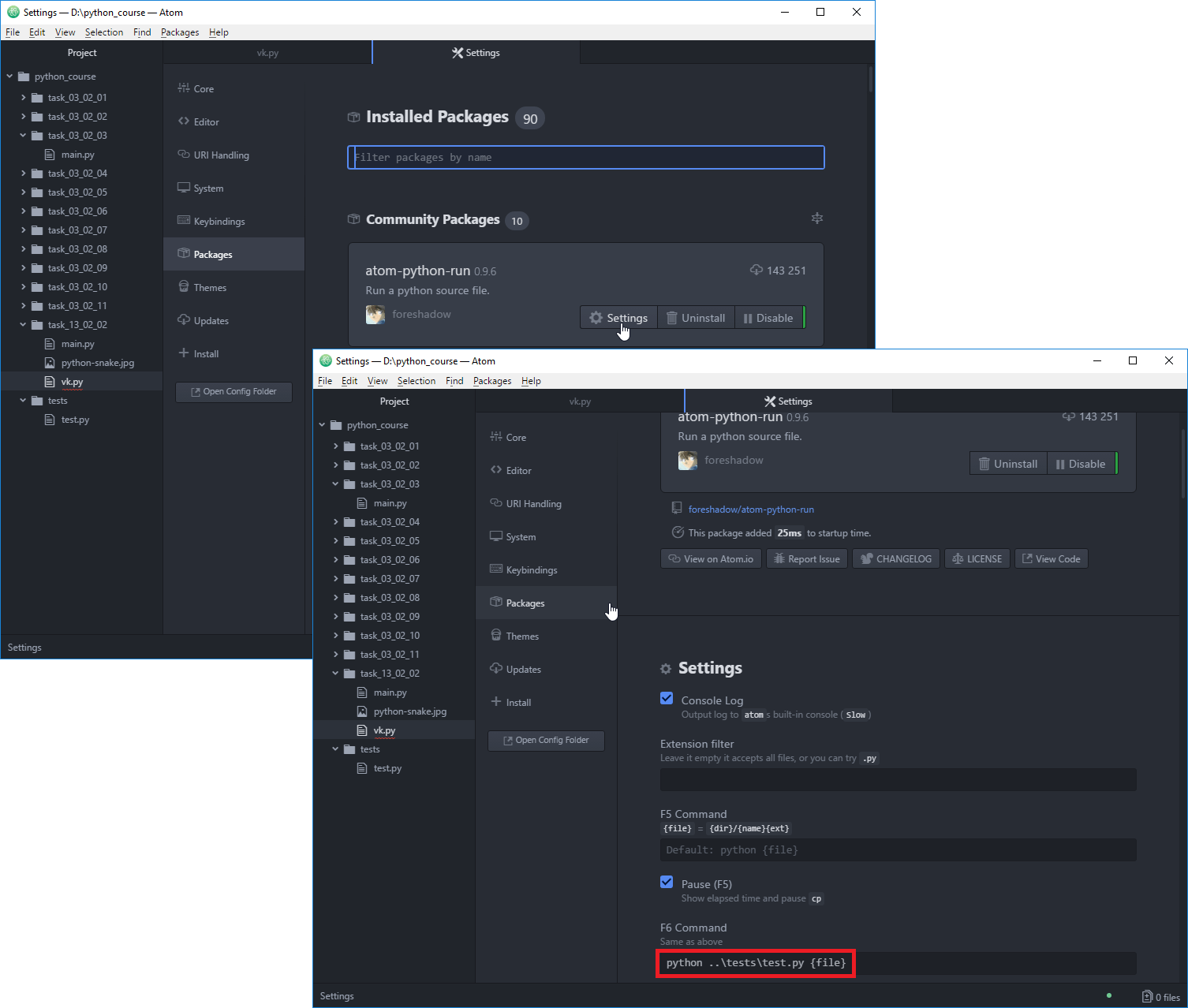 01/05/2019 · now, start atom from the command line as explained in the package docs. Additionally, make sure to run it with the project path you need. If the python command on your system is not yet pointing to python3, just replace the setting and write python3 {file}... If the python command on your system is not yet pointing to python3, just replace the setting and write python3 {file}.